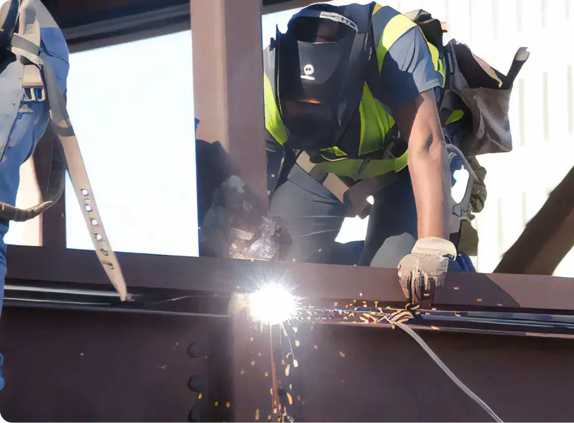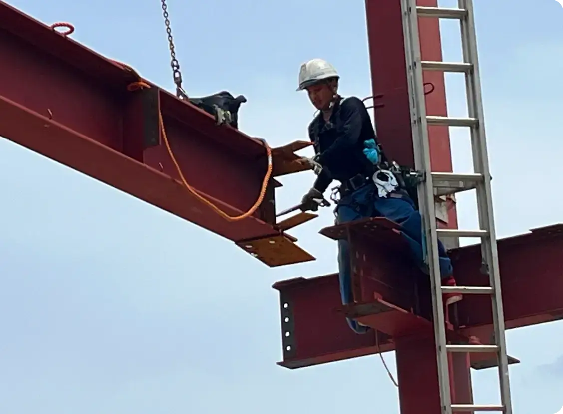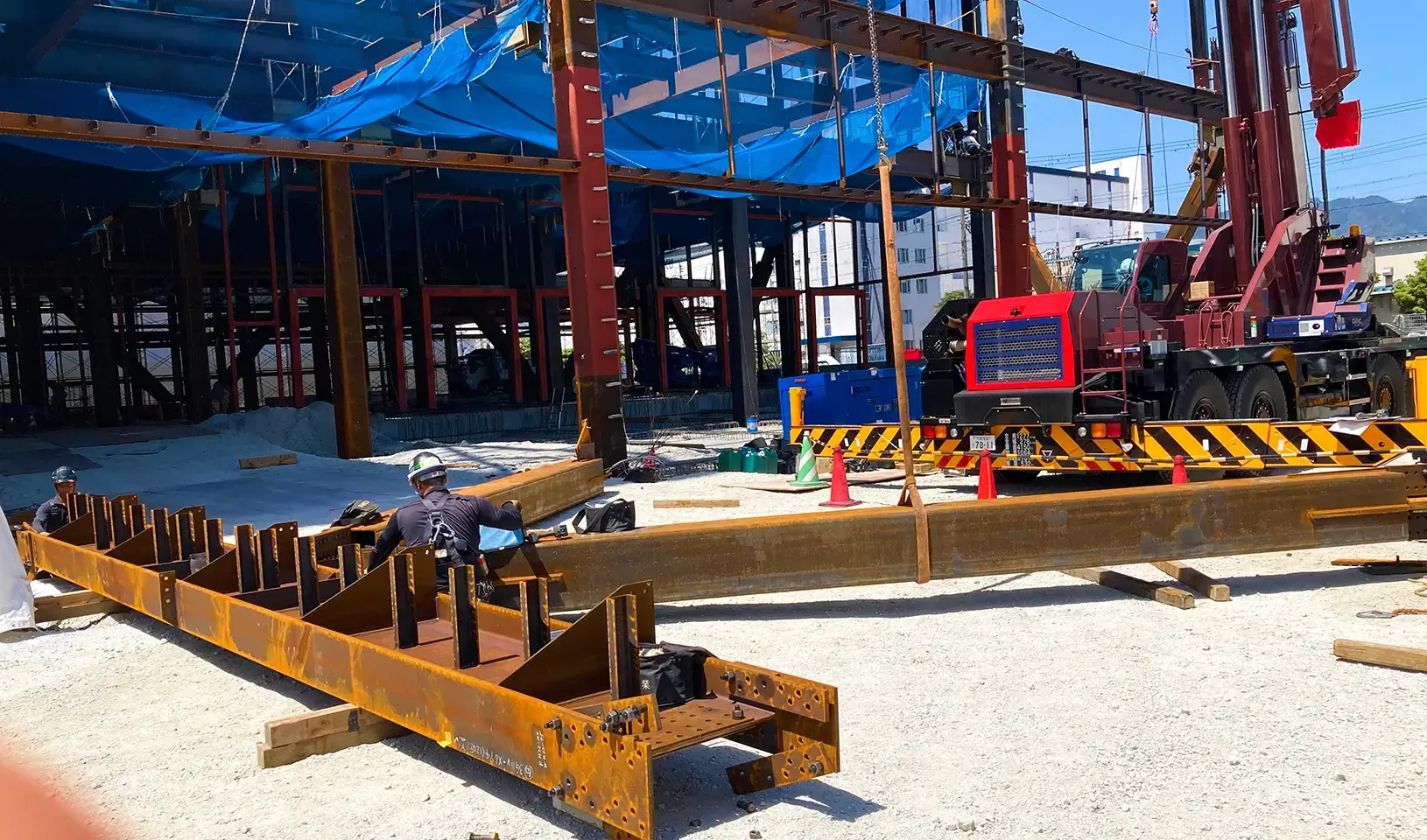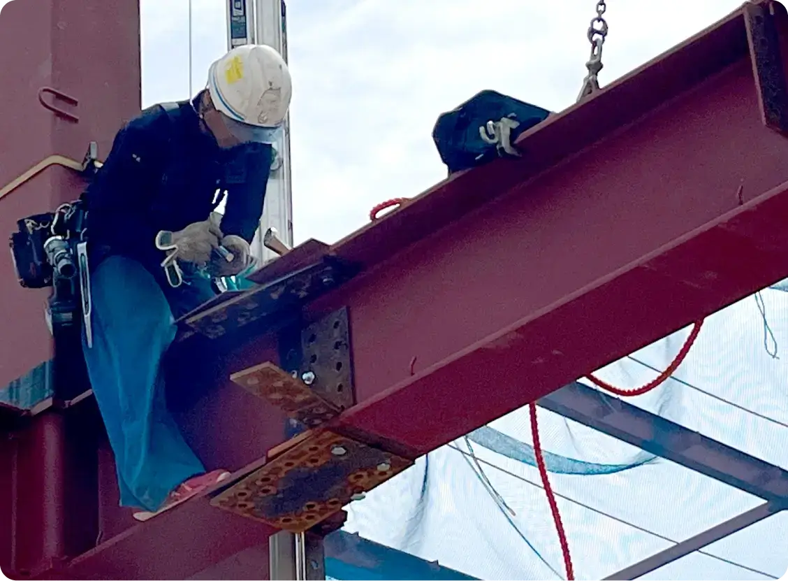 鉄骨工事とは、鋼で建築物の土台となる鉄骨・鋼材を組み上げる作業です。