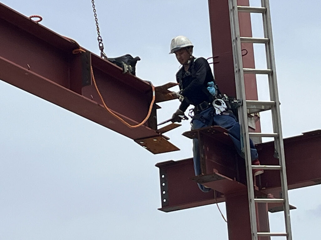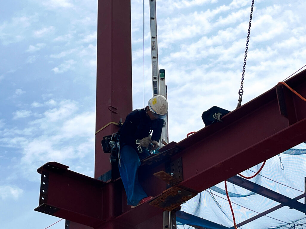 鉄骨同士を接合する際に、ボルト等で繋ぎ合わせる作業です。 「一次締め」「本締め」と呼ばれる作業工程でボルトが締め付けられます。 鋼材を組み合わせて一度に強く締めこむと、鉄骨同士の接合部分に遊びが無くなり、まだ締めていない […]